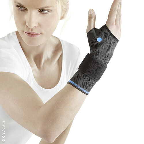 Indikation: Schmerzhafte Arthrosen im Handgelenk, rheumatische Veränderungen, schwere Ansatztendopathien im Handwurzelbereich. Wirkungsweise: Durch formfestes Material von den Fingergrundgelenken bis zum Unterarm erfolgt eine Ruhigstellung des Handgelenks bei freier Beweglichkeit der Fingergelenke; die Schiene wird durch zirkuläre Verschlüsse befestigt.